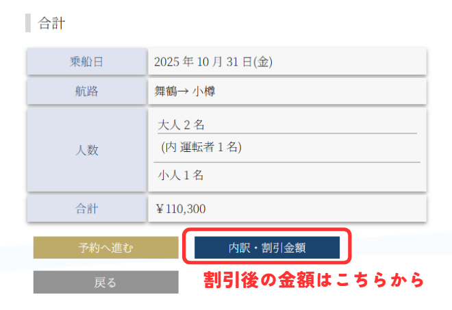 割引率は15%~20%で、主に船室運賃+乗用車運賃が対象になります。